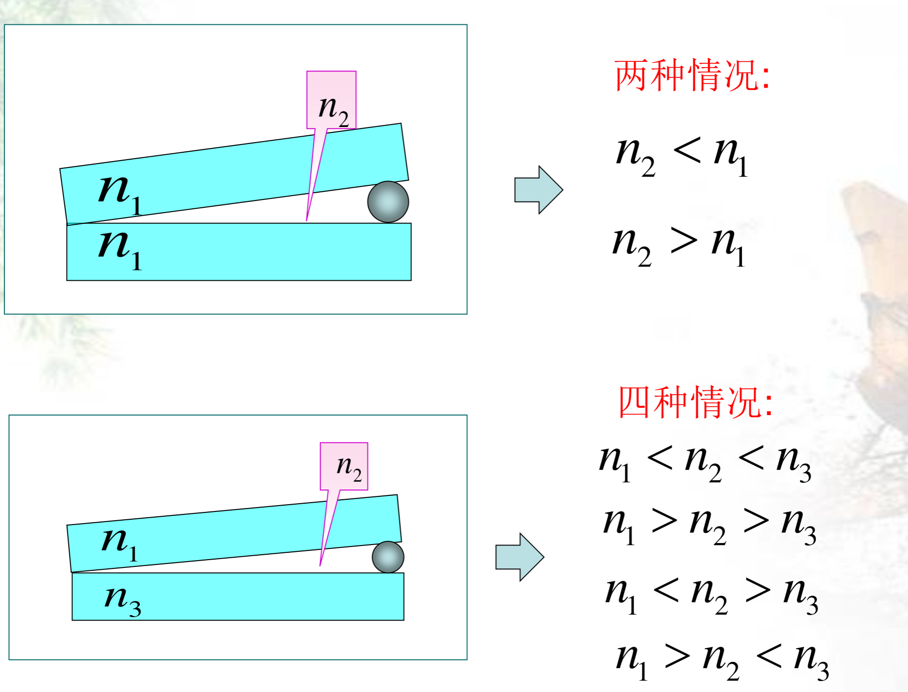 上下两板与中间的折射率均可以任取,于是便得到如下多种情况: